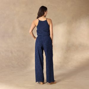Sporty and feminine. our cotton gauze. eyelet pants are loose and flowing. with wide-leg silhouette. scalloped hem. side seam pockets and back patch pockets. Fully lined. with button closure zip fly and tie at waistline. Machine wash. Imported. Exclusive. Sizes 0–14. 27.5 inseam