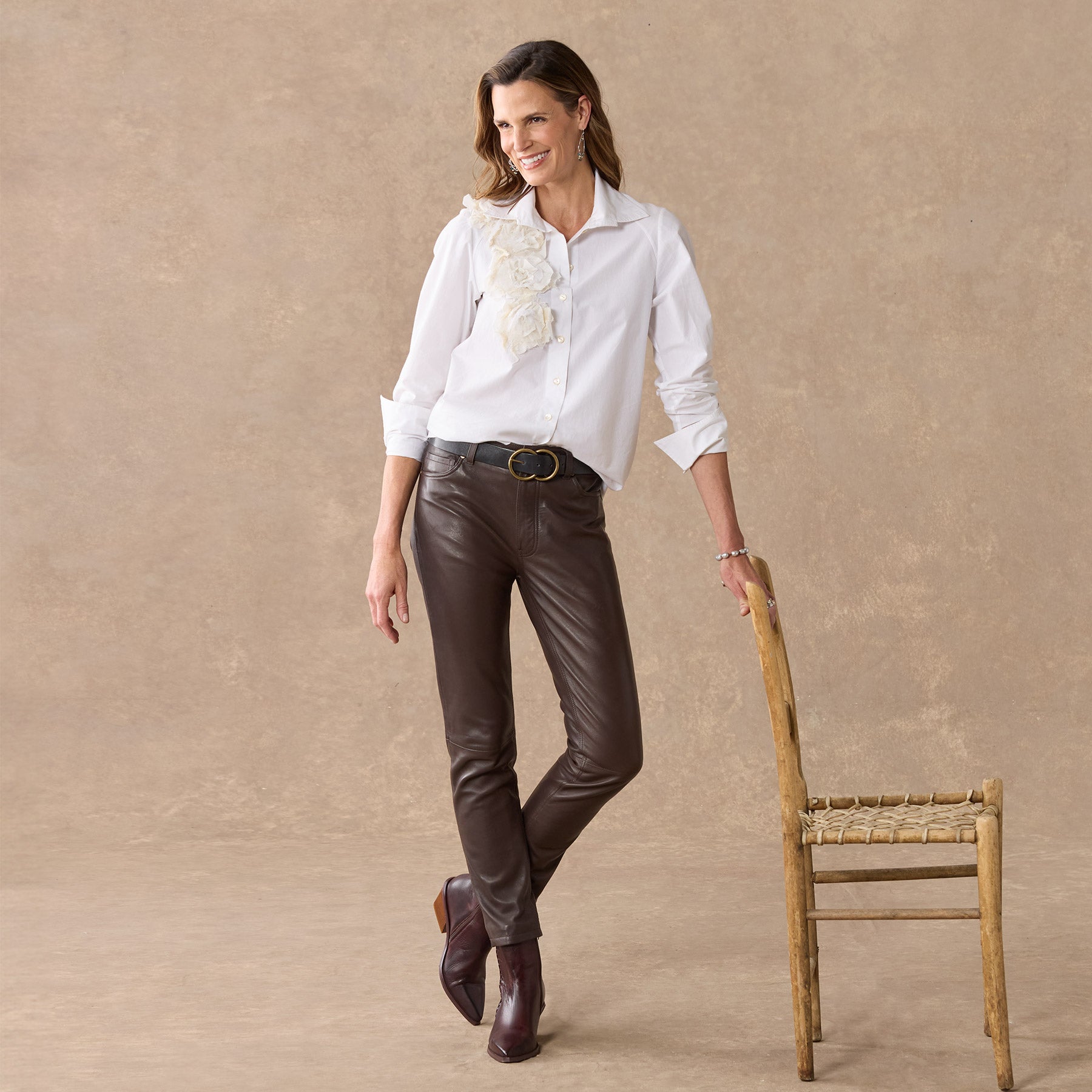An enduring classic with fresh. au courant touches. this Victorian-inspired. button-up blouse features asymmetric cuffs. structured collar. unfinished hem. and a lovely trail of mixed media floral applique at the front. Cotton. Dry clean. Imported. Exclusive. Sizes XS (0–2). S (4–6). M (8–10). L (12–14). XL (16–18). XXL (20–22). Approx. 27.75l.