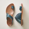 Go in comfort and style in these vegetable-tanned leather sandals with unique slip-through design straps and metal stud accents. Cork or rubber socks. rubber soles. Handcrafted. Imported. Whole sizes 6?C11. 1 heel.