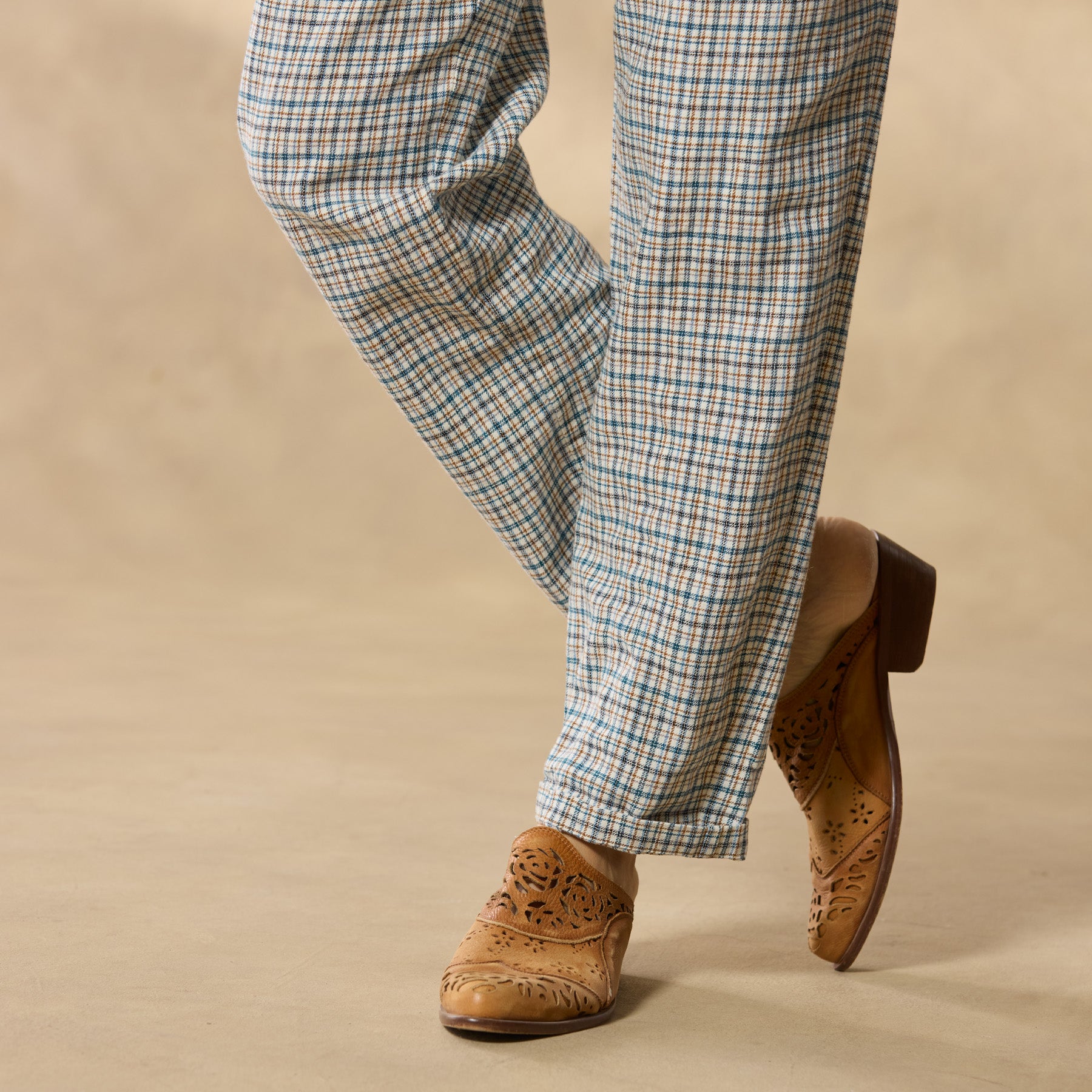 Just when you thought gingham couldn’t get ANY more easygoing. our Vivienne Pants entered the conversation. You’ll live in these pleated garment-dyed pants with a paper-bag waist and welt pockets in front and back. Cotton/linen. Machine wash. Imported. Exclusive. Sizes 0–14. 26 inseam.
